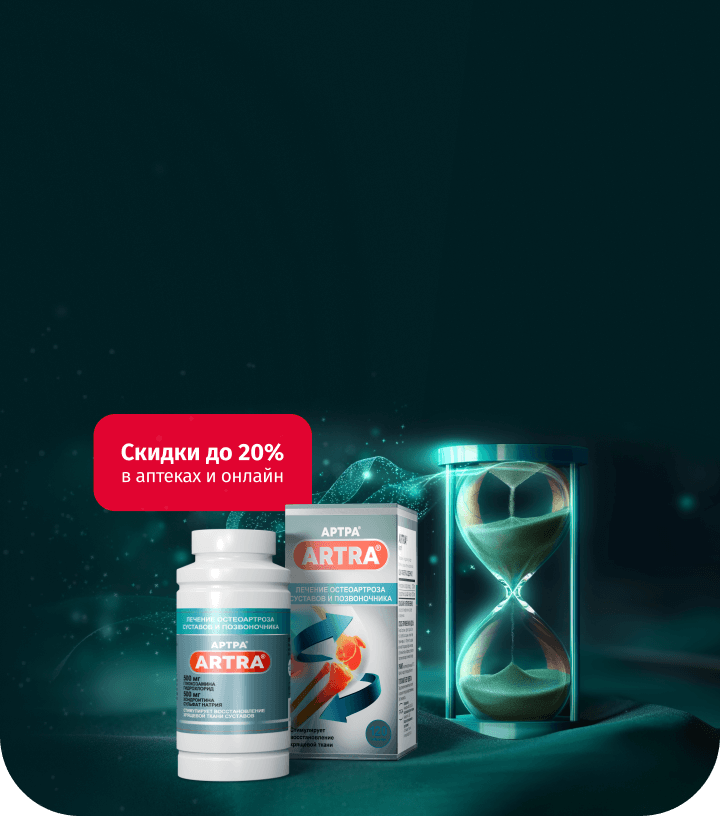 АРТРА® способствует восстановлению хрящевой ткани и предотвращению дальнейшего разрушения суставов, а АРТРА® МСМ поддерживает здоровье суставов при воспалениях и болезненных ощущениях.